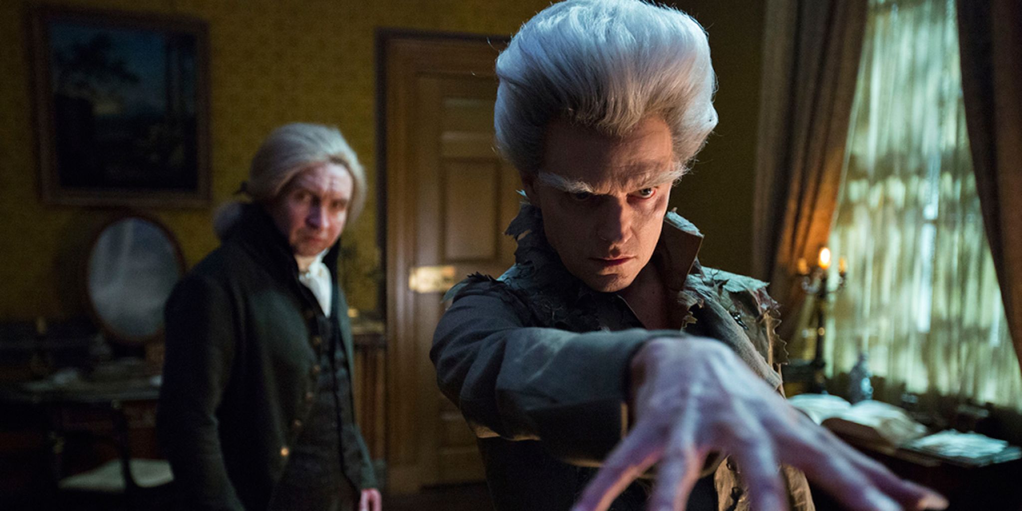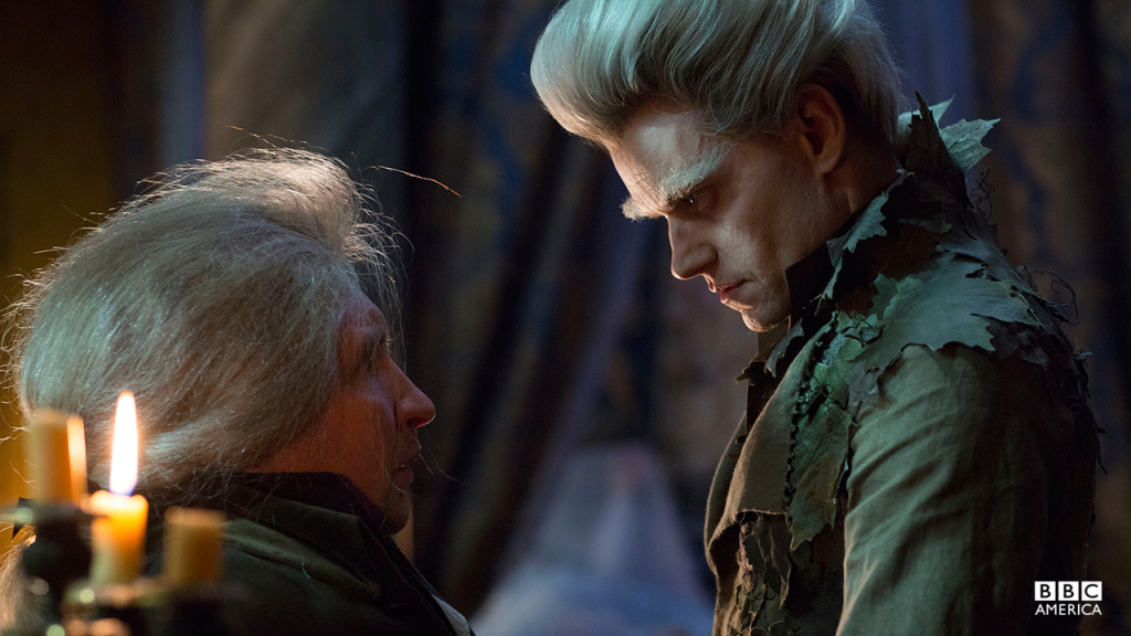 Unfortunately Marc Warren's performance mainly consists of birdlike mannerisms and standing too close to people while purring his dialogue. Even his hair and makeup look oddly subpar compared to the rest of the show: enormous false eyebrows and a bouffant quiff, positioned above a jacket adorned with fake leaves. Tastes may vary, but I suspect he'll be the one disappointment for fans of the novel.