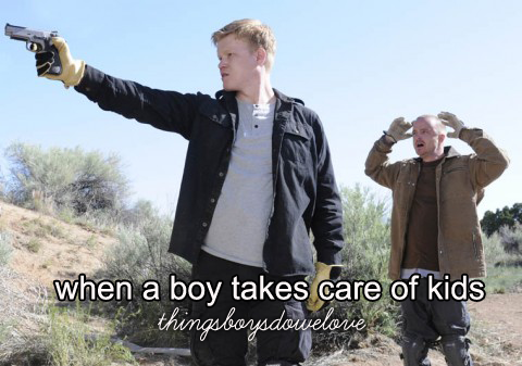 One redditor on the r/BreakingBad subreddit did the next best thing: snatched corny teen platitudes from the Things Boys Do We Love Tumblr and Photoshopped them over scenes of Todd at his vilest.