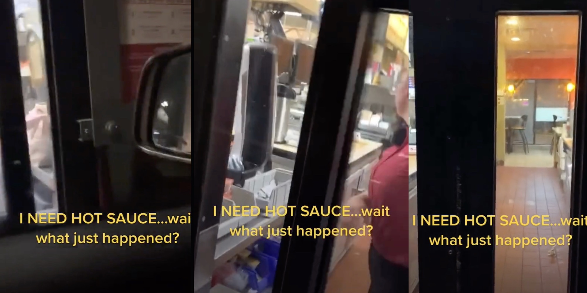 The video includes a text overlay that says, "I NEED HOT SAUCE...wait what just happened."