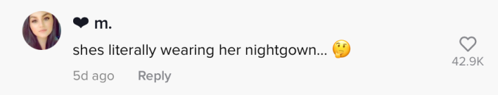 Commenters remarked that what the woman who was criticizing her was dressed in a way that didn't give her a whole lot of room to talk—they said it looked like a nightgown.