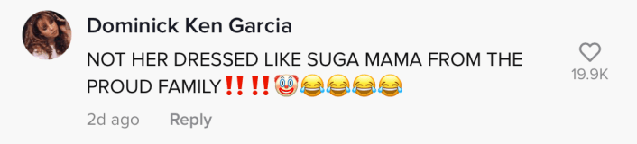 "Not her dressed like Suga Mama from the 'Proud Family!'" the commenter wrote.