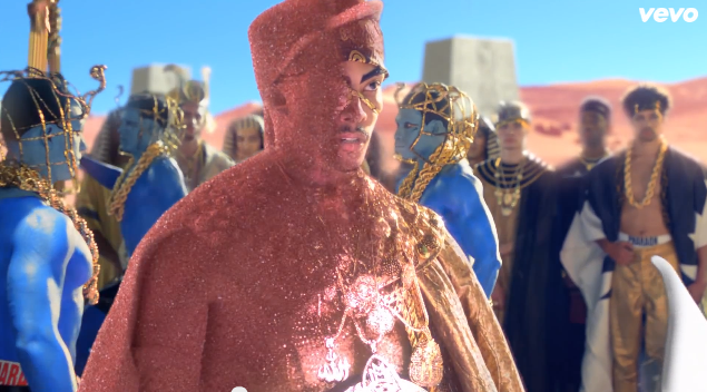 A petition is now circulating, asking for the video to be removed from YouTube. The reason? A scene in which a man wearing a pendant including the word “Allah” is burned and turned into a pile of sand by Perry, who is dressed as... Cleopatra? Maybe? The petition explains: