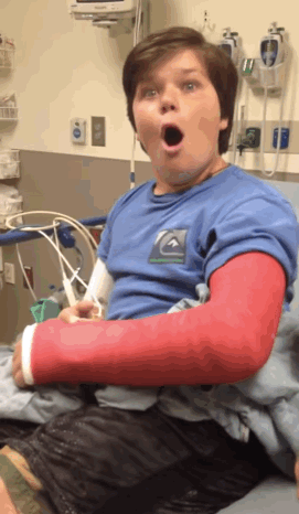 Breaking a bone is never an enjoyable experience. Everything from the actual pain to wearing a cast or sling can make you totally miserable. But this kid is super psyched to be all wrapped up.