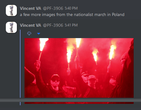 The march in Poland is organized by the fascist National Radical Camp (ONR). Reuters reports that tens of thousands participated in ONR's 2019 march, making it among the largest far-right gatherings in the world. Billy said that this was at least Patriot Front's second time participating. In its document recapping the trip, Patriot Front wrote that it interacted with nationalists from Spain, Austria, and Germany at the march.