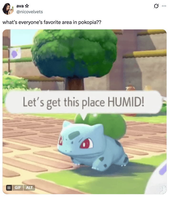 @PokeMarr tweeted a GIF of the game dialogue, saying, "The humidity in Florida went down from 70% to 40% for a few days and my nose is chapped. I feel like bulbasaur."