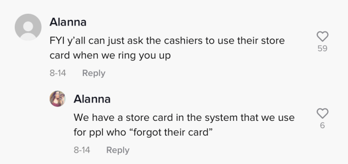 This is a quick fix that will work in a pinch, but he actually loses the savings he would earn if he used a loyalty card. This was not lost on some of the commenters, who pointed out that the card itself was free.