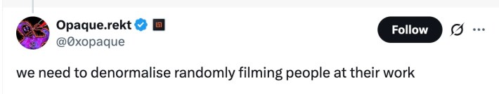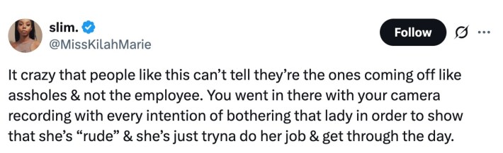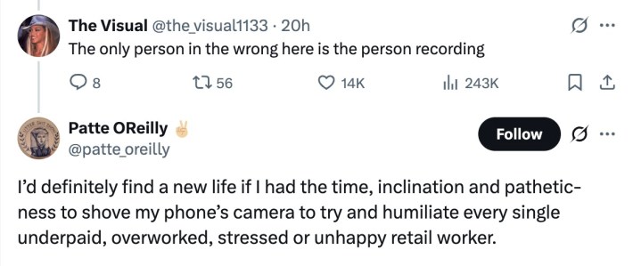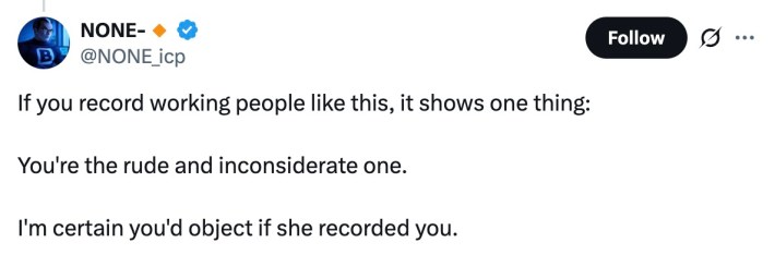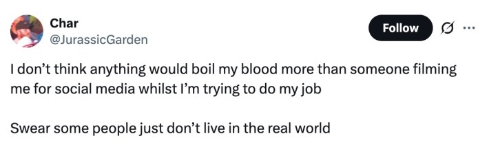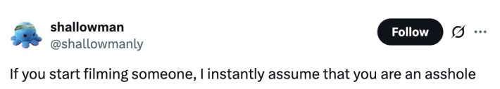 One of the most prevailing responses to the whole debacle was some variation of "stop filming strangers." As recording the most benign interactions and blasting them to the internet becomes obnoxiously common in the modern world, it's obvious a lot of people are sick and tired of it—especially when someone is just trying to do their job.