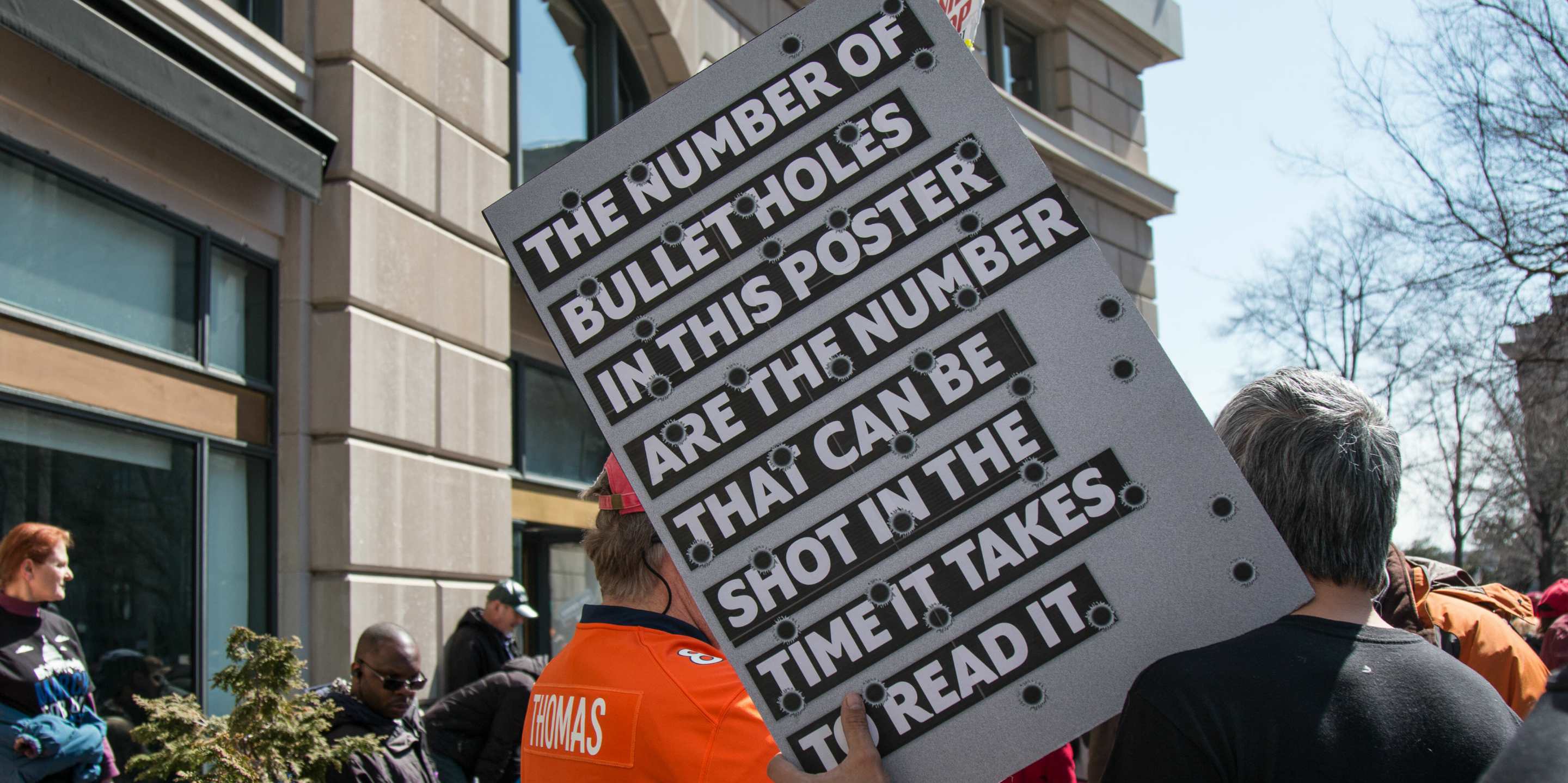"I’m Connor Roberts. I’m from Southern Maryland, White Plains, Maryland, specifically. I’m here today to protest the extreme stances of the NRA. I hunt every year. I hunt deer and turkey to feed my family and enjoy being outside. I use a bow and arrow and a pump shotgun. I don’t need an AR-15 or a high-capacity magazine. I don’t need these combat weapons to be an outdoorsman and provide for my family. I’m sick of the NRA and other groups like them using hunters as an excuse to let these weapons invade our concerts and schools. We don’t need them. We just don’t."