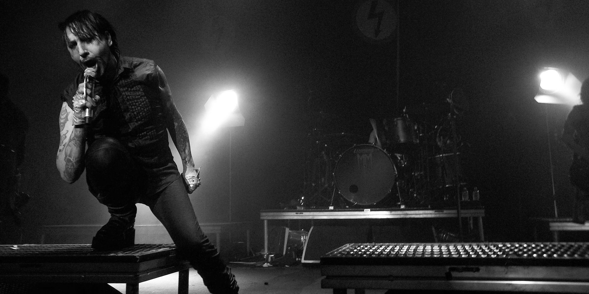 The shoot was built around the March issue of Paper, one which dons Manson's mug on its cover.