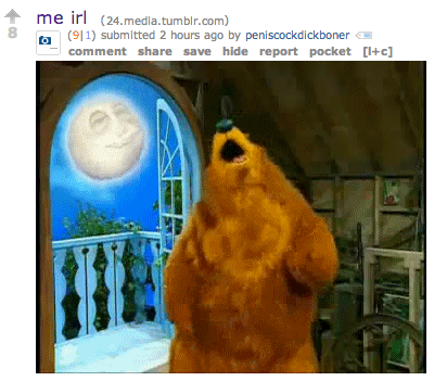 “The sub is popular because we weed out the bullshit, and what’s left is pretty damn good,” one mod told me in a Reddit private message. He didn’t need to convince me. I find r/me_irl to be consistently, refreshingly funny, and there’s a surprising amount of creativity in the submitted GIFs and photos.