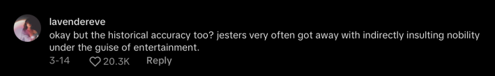 As one commenter described it, "Jesters very often got away with indirectly insulting nobility under the guise of entertainment."