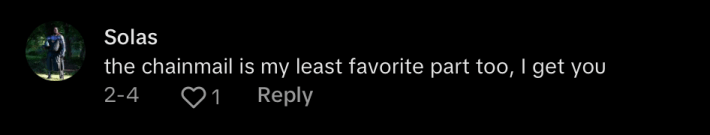 "The chainmail is my least favorite part too, I get you," a sympathetic would-be knight wrote.