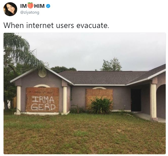 In 2017, when a category 3 hurricane named Irma hit the Florida coastline, evacuees made Ermahgerd graffiti on their way out.