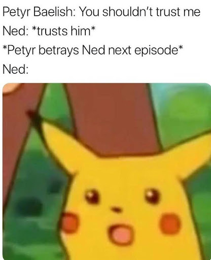 The use case for Surprised Pikachu is actually a pretty accurate reflection of the in-universe scenario from which the image is taken.