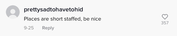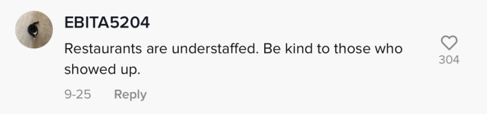 "Restaurants are understaffed," one commenter wrote. "Be kind to those who showed up."