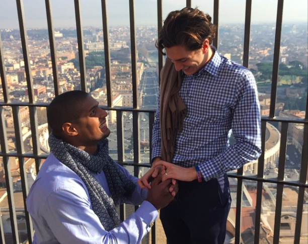 Michael Sam announced his engagement to longtime boyfriend Vito Cammisano on Instagram, writing, "@vitcamm thank you for making my 25th birthday a very special one," followed by a series of emoji rings and international flags.