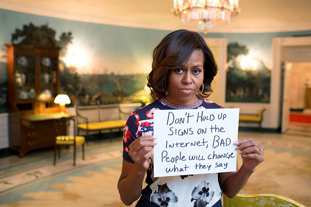 First Lady Michelle Obama took to Twitter earlier this week to contribute her voice to the #bringbackourgirls campaign—an effort to spread awareness about the plight of the 276 missing schoolgirls kidnapped by Boko Haram in Nigeria. She posted a simple tweet featuring a photo of herself holding a sign with the hashtag on it.