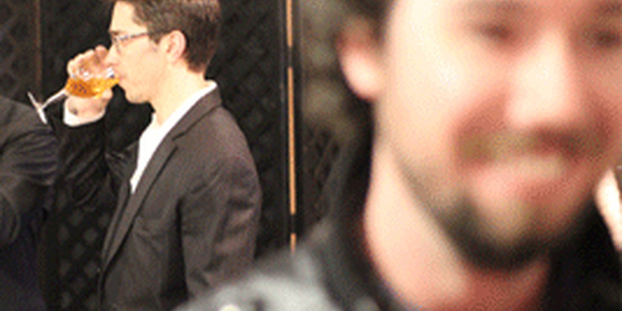 Photo taken from a GIF of Hayes (foreground), actor Justin Long and humorist John Hodgman at the Webby Awards.
