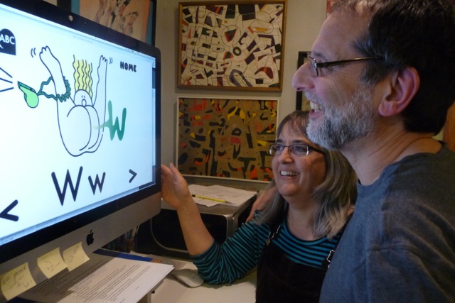My dad, mom, and brother collaborated on the design, creating the slides in Adobe Illustrator. “Mom was convinced there should be added value with all the little things,” my dad says. “The letter A has an apple now. We were very anal”—no pun intended, I’m sure—“about the graphic design end of it, the illustration end of it.”