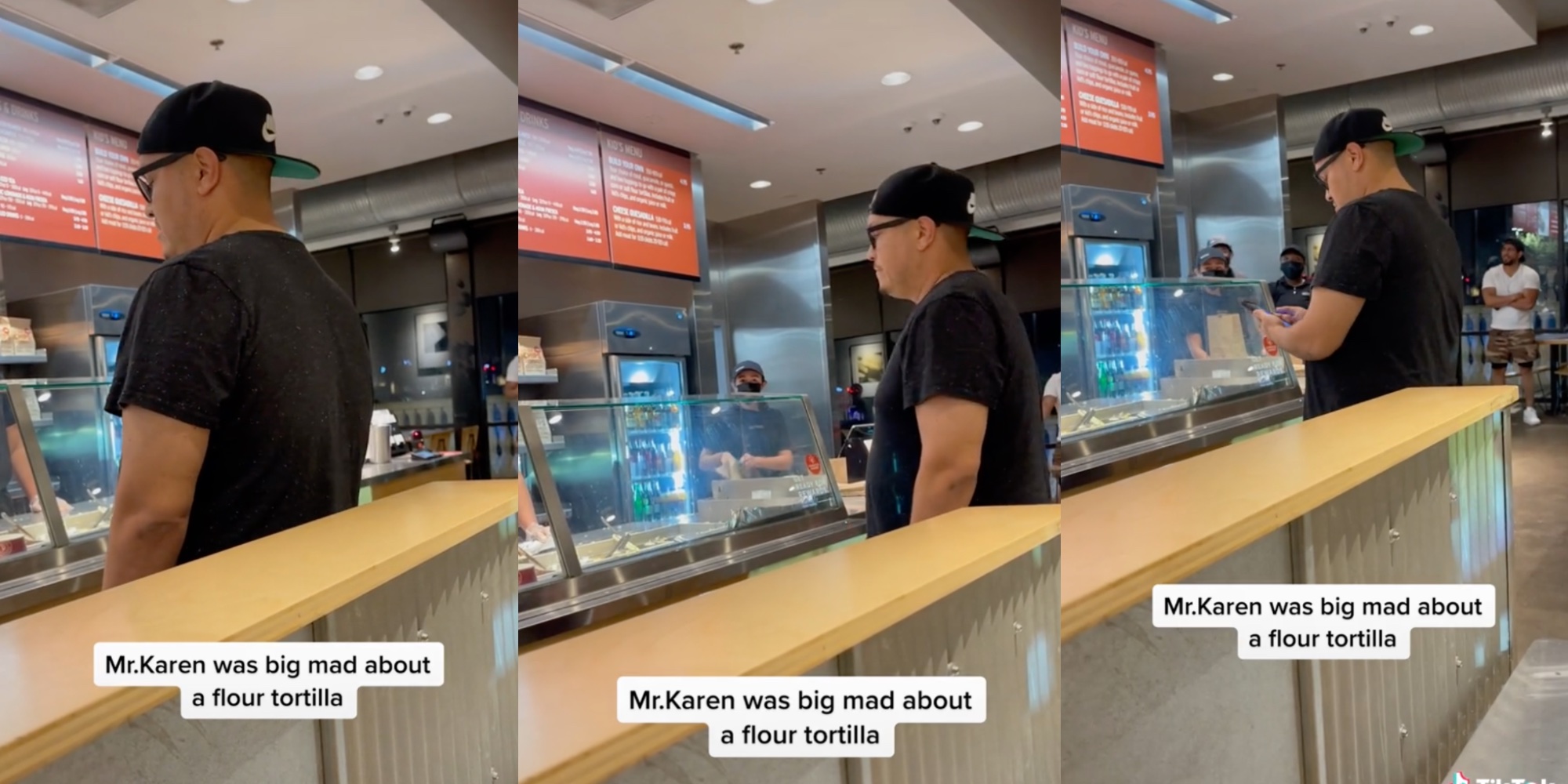 "Mr. Karen was big mad about a flour tortilla," the TikToker, who was seemingly behind the man in line, wrote via text overlay on the TikTok.