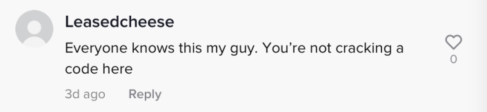 "Everyone knows this my guy," one commenter wrote. "You're not cracking a code here."