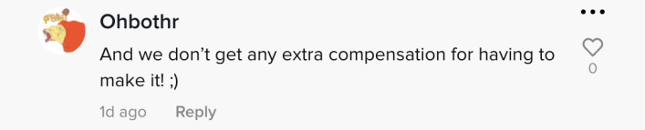 "And we don’t get any extra compensation for having to make it!" one person said.