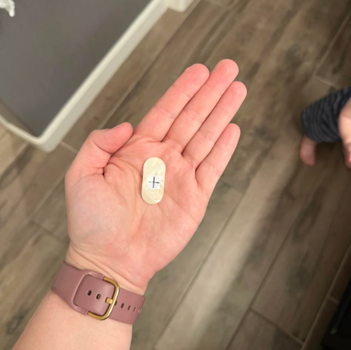 "Pulled this item out of the back of my son’s mouth/throat after picking him up from daycare," they wrote. "It’s very thin and doesn’t have a sticky side from what we can tell."