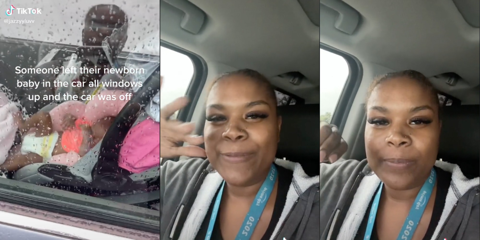 The TikTok showed a baby squirming in its car seat, which it wasn’t strapped into. Jazmine said the car was off and all the windows were up.