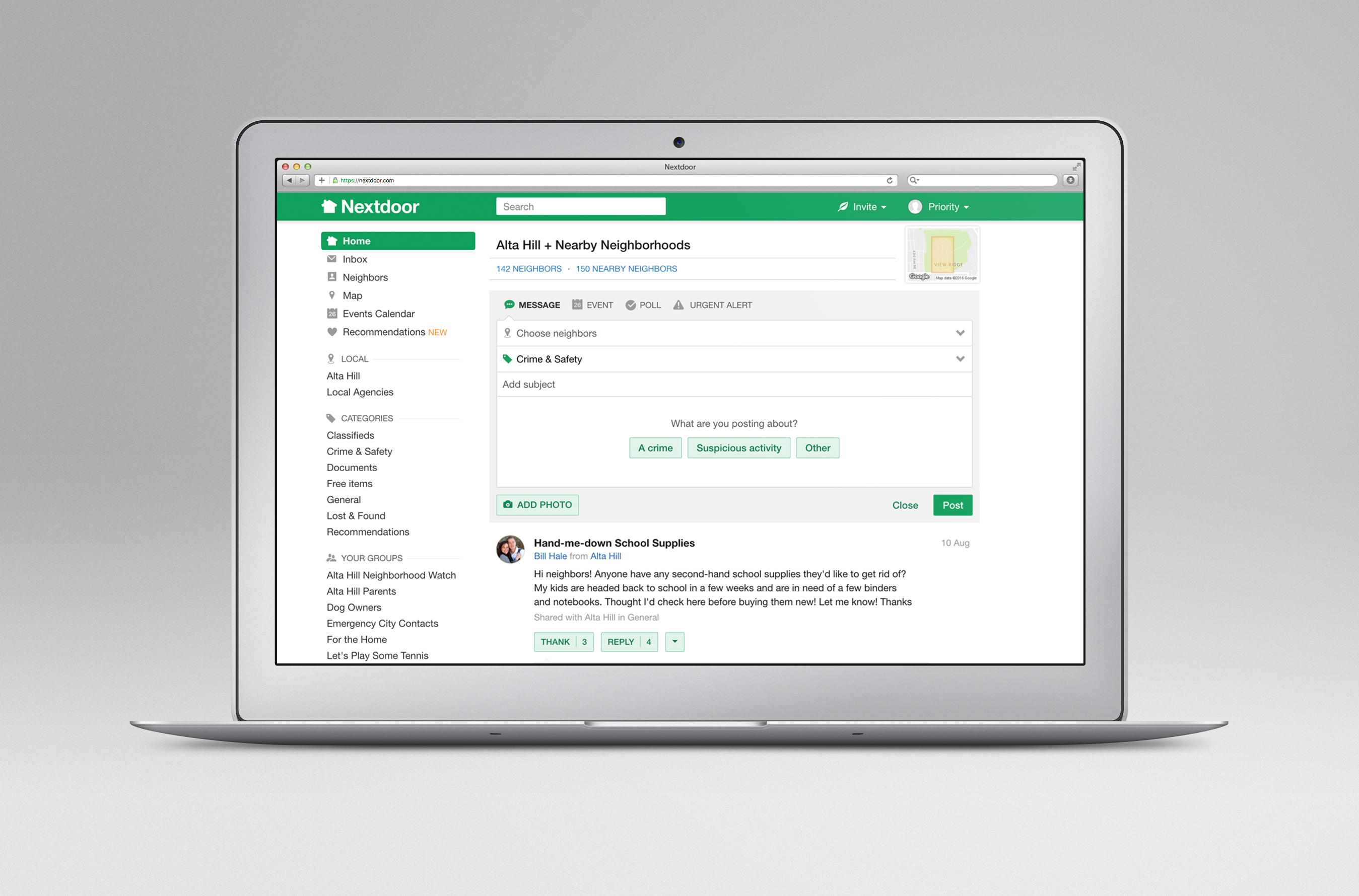 Thus far, that concept seems to be working. In tests run by the company, which eventually reached as many as 80,000 neighborhoods, Nextdoor saw a 50 percent increase in abandonment—posts that users started and then decided to ditch.