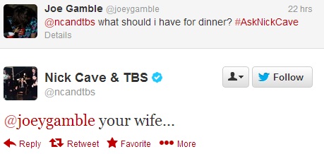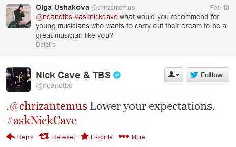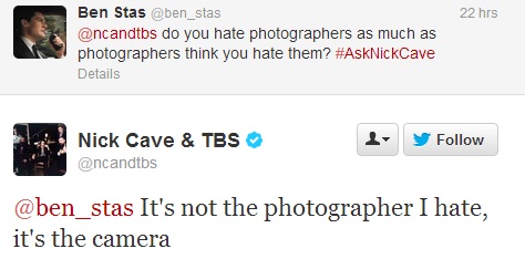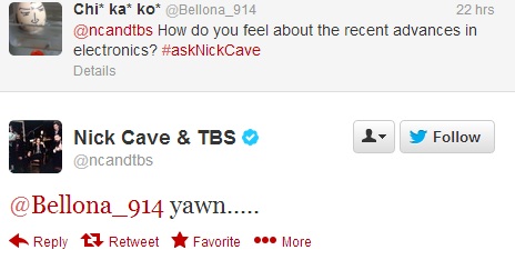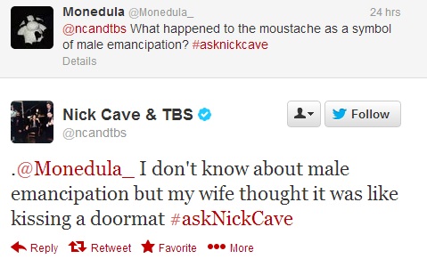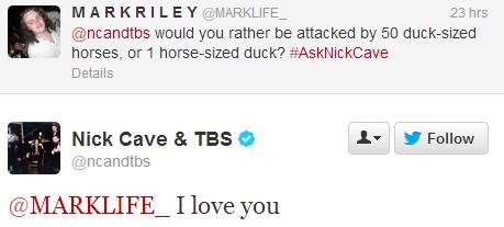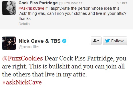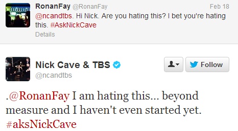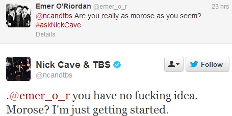 Asking Nick Cave to do a Twitter Q&A invokes only slightly less curmudgeonly tweets than a Morrissey Q&A would.