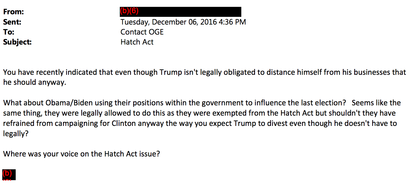 — U.S. Office of Government Ethics (@OfficeGovEthics) November 30, 2016