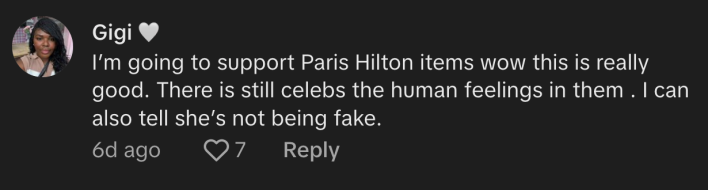 "I'm going to support Paris Hilton items. Wow, this is really good. There are still celebs with human feelings in them. I also tell she's not being fake," commented @foreignbeuaty21.