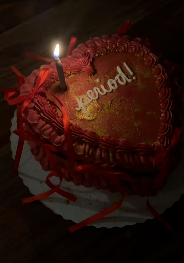 In a TikTok shared by @annuhleee on Jan. 13, 2026, the parents surprise their daughter, Phoenix, with a red-and-pink heart-shaped "period cake," praising her maturity and resilience.