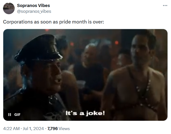 One of the most common variations of this meme is the "companies when Pride Month ends" joke.