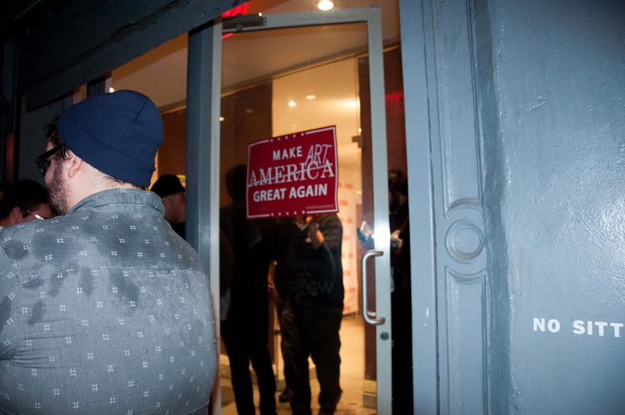Against a backdrop of Banksy-esque, reactionary, pop art: Moneyed, urban alt-righters gathered as chicly as their yacht club aesthetics allowed to sip wine and pose for pictures with celebrity contributors like Milo Yiannopolous and the world’s most punchable thirtysomething, Martin Shrkeli. This gallery opening set itself apart from usually free Chelsea shows in that entrance prices ranged between $65 and $3,500 (which at least one person actually paid), payable on the show’s Indiegogo page. The money presumably went toward “Making Art Great Again.”