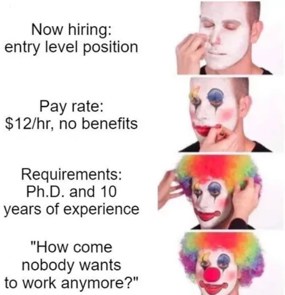 The clown meme, aka the Clown Putting on Makeup meme, in which the clown progressively applies a full face of makeup and a wig, was created from an actual tutorial for would-be clowns. However, some people find the meme (and clowns at large). It is used in situations where you feel more and more like a clown with each passing moment.