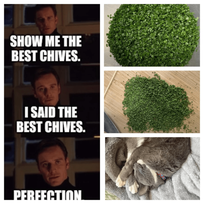 "This chives thing has got to be the most unhinged yet hilarious fad I've seen on Reddit in quite a while. Thanks for the hysterical laughter, you deranged cooks." u/CocoMilhonez