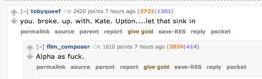 (You kind of got the sense that given the opportunity, some of these dudes would be totally down to have sex with the OP for having met Kate Upton, rather than Upton herself).
