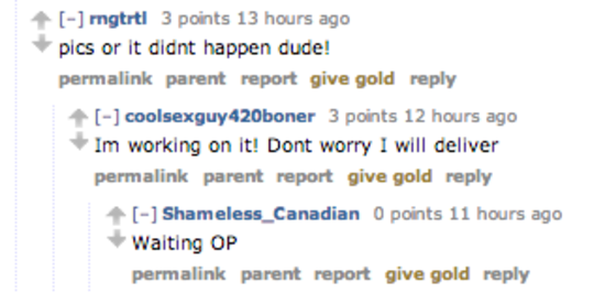 Update: Apparently, coolsexguy420boner isn't as cool or sexually active as his username suggests. He just posted the following on the Reddit thread:
