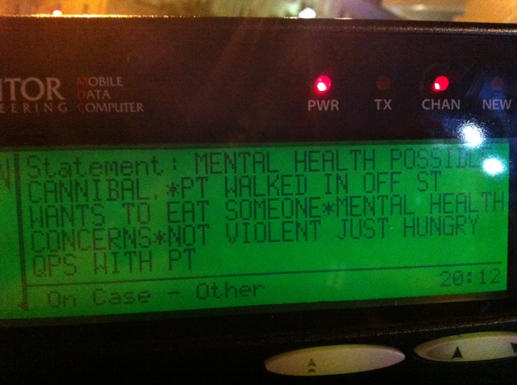 Yes, famished people-eaters are a new hazard on the paramedic beat, if this image from redditor callapygian is to be trusted, at any rate.