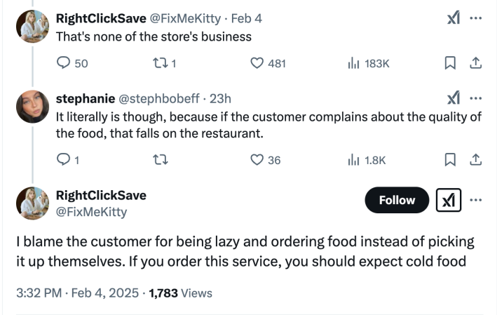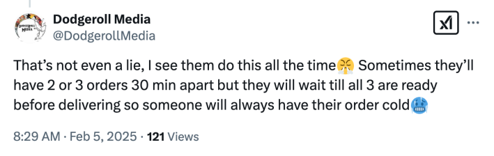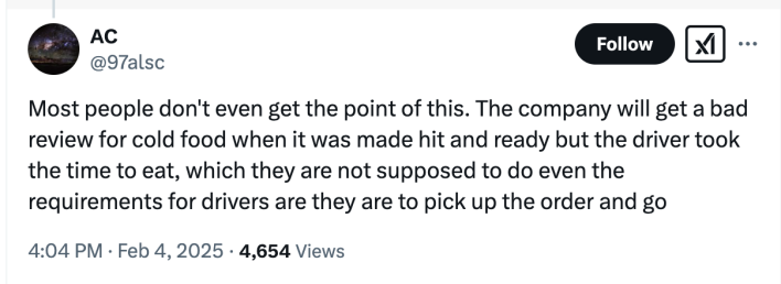 A different survey taken one year prior suggested that Americans, at least, are more likely to blame the restaurant for problems with an order than the driver or the app. With that in mind, it isn’t hard to understand why whoever made the order was frustrated to know that the restaurant would likely take the hit if the customer reported an issue.