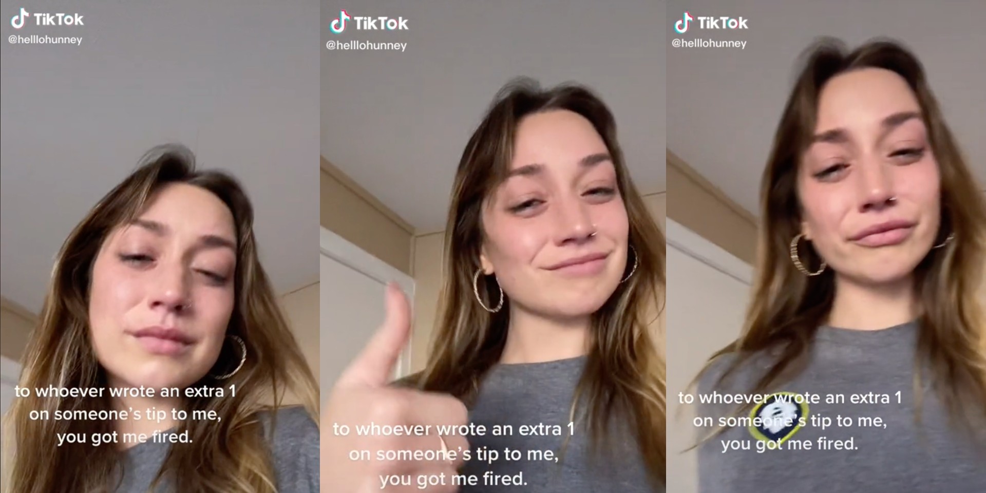 "To whoever wrote an extra 1 on someone's tip to me, you got me fired," the text overlay on the TikTok read.