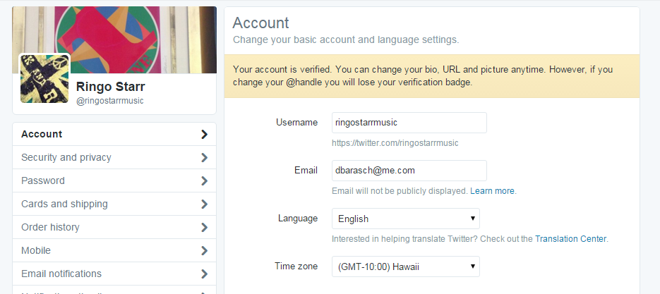 Ringo Starr's Twitter Account