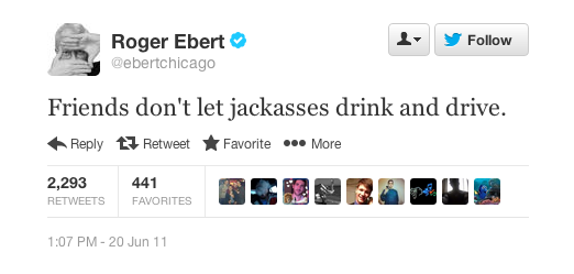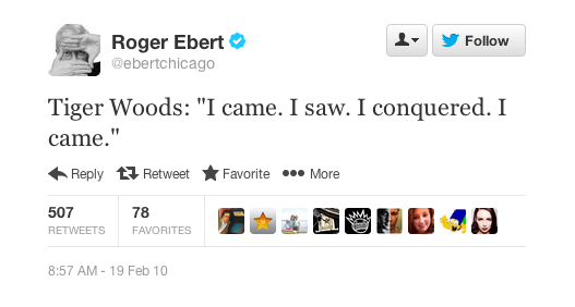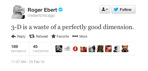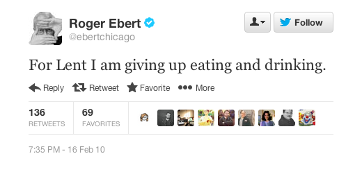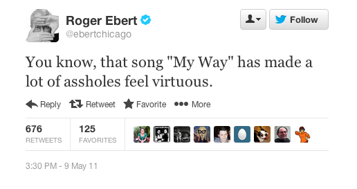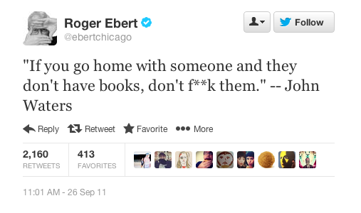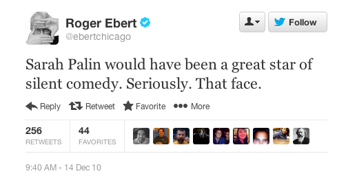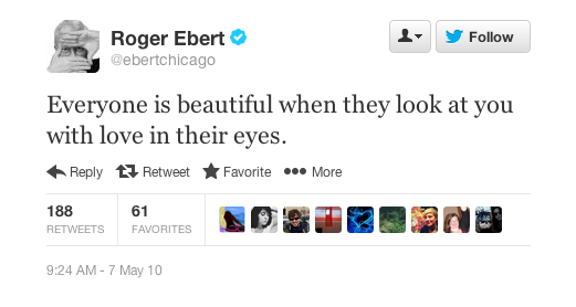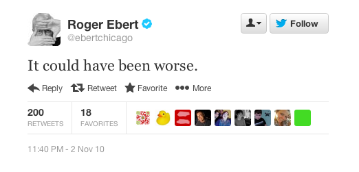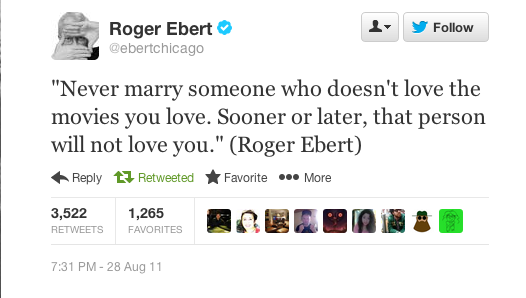 But if I had to pick my favorite Roger Ebert tweet, it'd be the following.