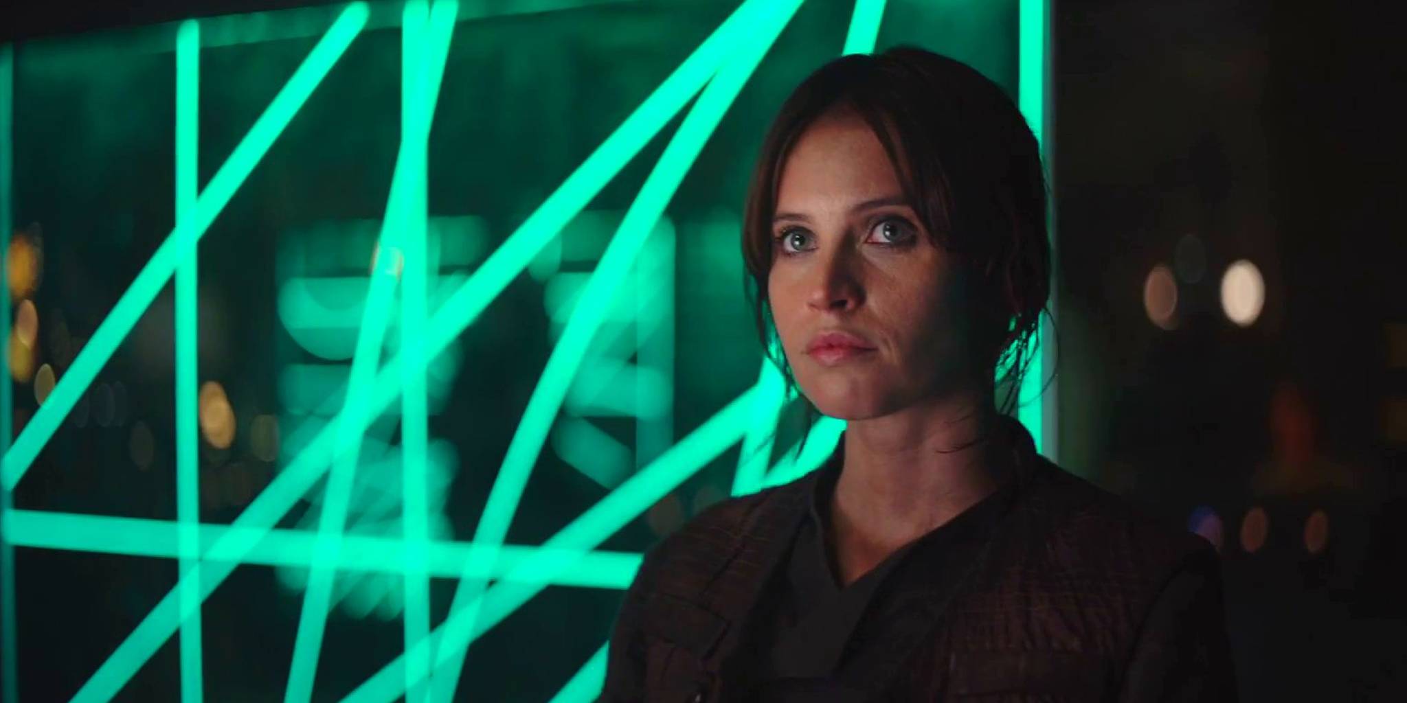 Jyn Erso (Felicity Jones) follows in the grand, mythical tradition of Star Wars protagonists: abandoned by her parents on an aesthetically forbidding planet, and later corralled into joining the Rebel Alliance. Unlike Luke or Rey, she's kind of a reluctant hero. At first she's apathetic toward the war effort, stating at one point that she's "never had the luxury of political opinions." But as the daughter of the Empire scientist who helped create the Death Star (Mads Mikkelsen), she wants to redeem her family legacy—an arc that's mirrored by other members of the Rogue One team, who are more pessimistic and damaged than energetic heroes like Poe Dameron or Luke Skywalker.