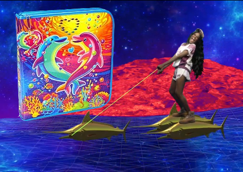 Though its joke origins are clear, seapunk can be read as a subversive take on similar X-punk movements within sci-fi/fantasy communities; like steampunk and stitchpunk, it fixates on a historical cultural aesthetic and merges it into a futuristic world full of overwrought grandeur—if you consider bleeding colors and memeified clip art grand. And there are deliberate cyberpunk elements involved, like the emphasis on computer-generated technology, pixellated everything, and the endless flow of images like data across the screen. It’s as if Max Headroom got stuck in your playlist, and now the only way out is through the music, often a chillaxed electronica dance beat that surfs its way across the ocean of your brain.