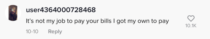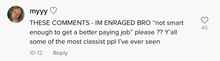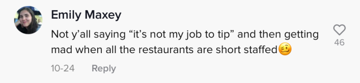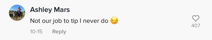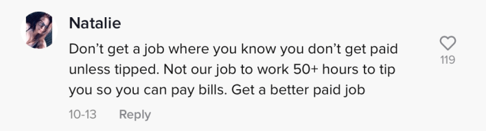 Another commenter suggested she get a "real job" so that she won't have to rely on tips.
