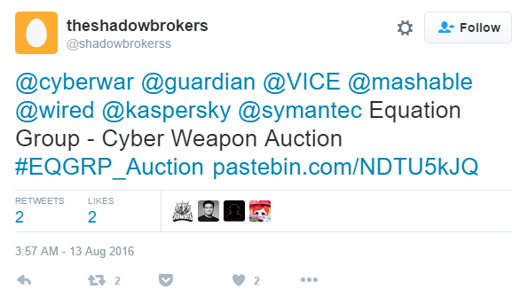 Not much attention was paid to the Shadow Brokers until early Monday morning when Mikko Hypponen, a popular cybersecurity executive at F-Secure, tweeted the group's Tumblr page.