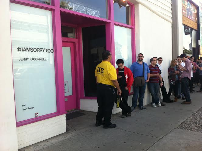 The line kept growing. News crews showed up and anchors with big white teeth started interviewing the people waiting. Down the street, two gangly guys started putting a sign on the storefront next to the gallery: #IAMSORRYTOO.