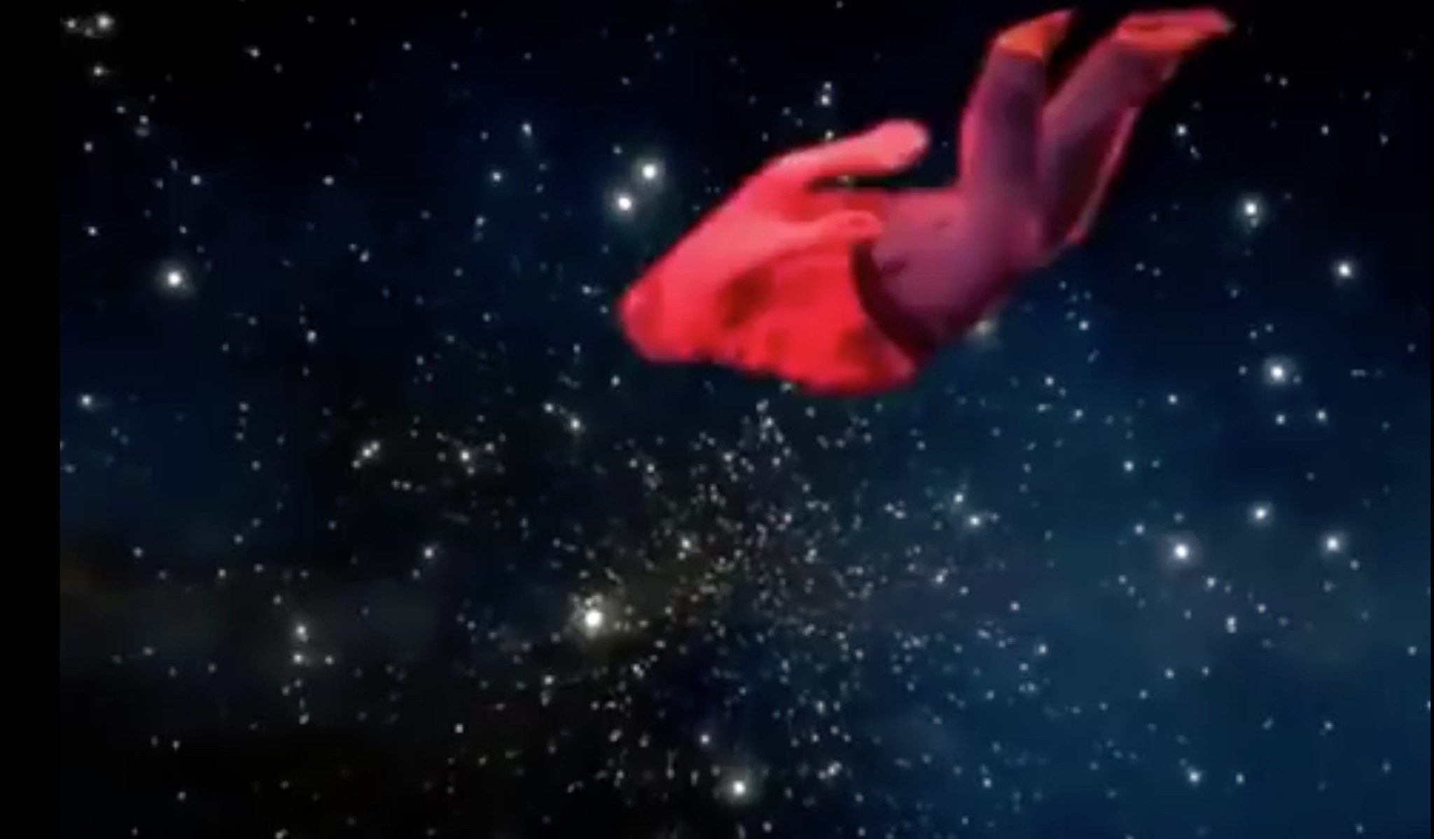 The key moment occurs at around 2:15 in the video, when the world crumbles around the Bag Raiders and they begin to fall through the void, before landing on some cool space-cars and zooming around everywhere.